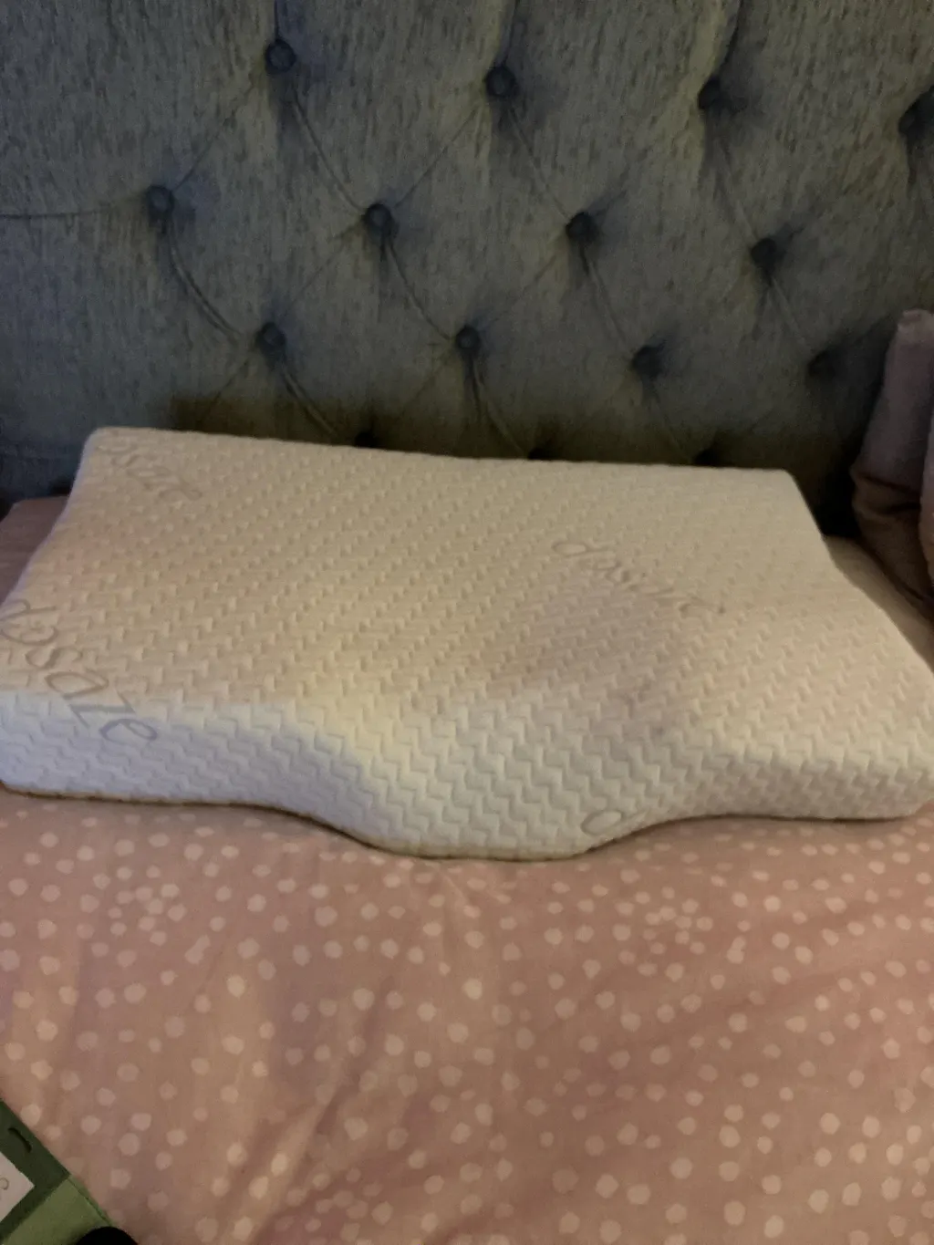 I have tried curved memory foam pillows recommended for neck pain in the past which weren’t cheap and helped to a certain extent, but as anyone who suffers chronic pain knows that lack of sleep and waking up with headaches makes you prepared to try anything. However I was dubious as it was expensive and an unusual shape. I should mention I have scoliosis, OA of the neck and spine and severe cervical stenosis, so the wrong pillow can make things worse.