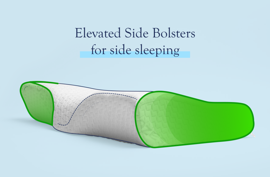 • Elevated side bolsters fill your shoulder gap, keeping you neck and spine aligned