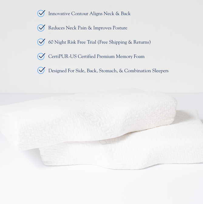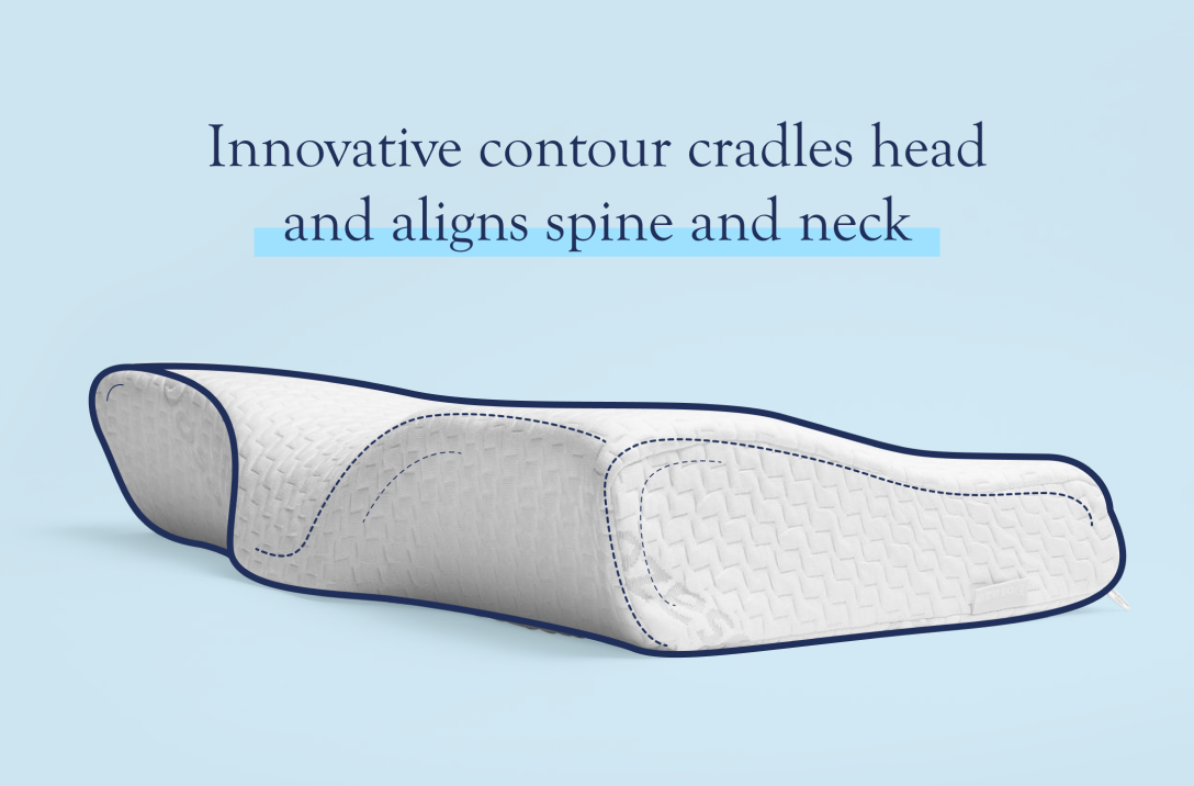 (1) The innovative contour keeps your neck and spine aligned. This helps reduce neck pain, as misalignment is a leading cause during sleep.